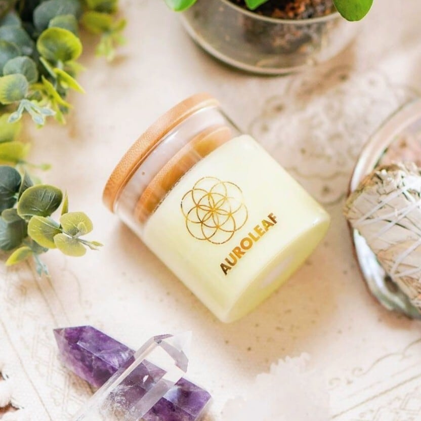 ソイキャンドルの原料は大豆から作られたソイワックスです。AUROLEAFのキャンドルは国産プレミアムソイワックスを使用しています。100%植物由来のため再生可能な天然素材で、ススが出にくく燃焼時間が長いのが特徴。環境に優しく持続可能な生産が可能です。