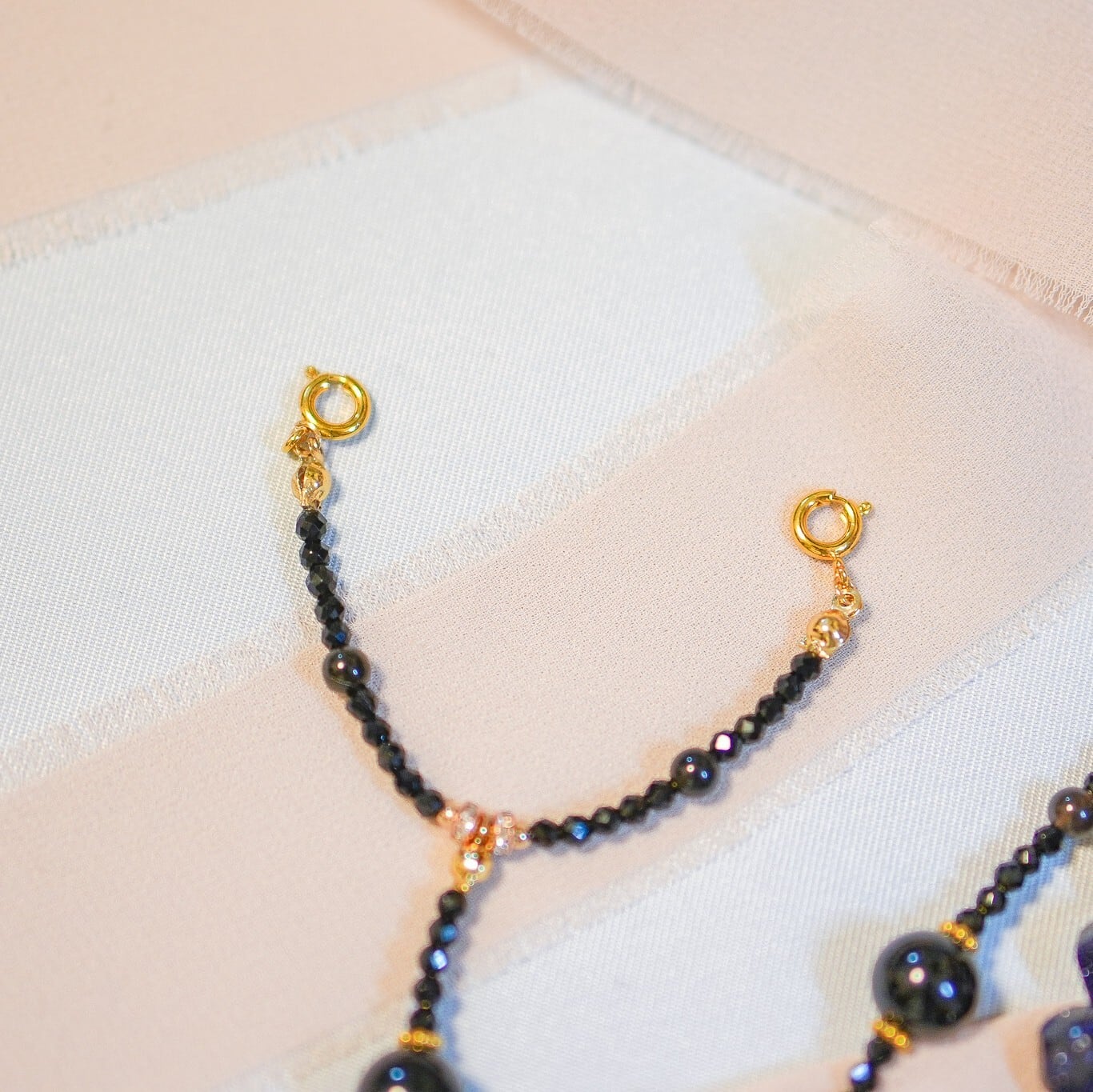 漆黒の石たちが放つ重厚感は、持ち主を強く守護し、まるで祈りを込めたお守りのよう。