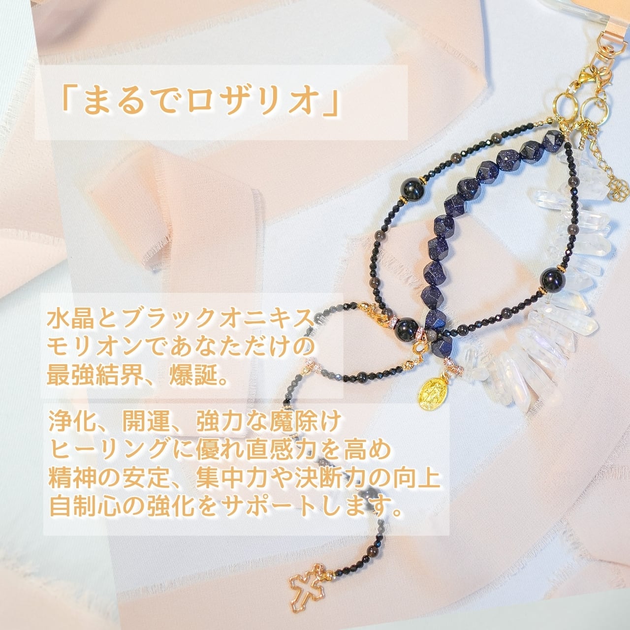 「スマホに宿す、漆黒の祈り。護りと力を宿す天然石ロザリオストラップ」レギュラーサイズ