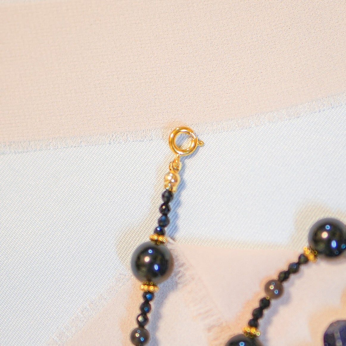 漆黒の石たちが放つ重厚感は、持ち主を強く守護し、まるで祈りを込めたお守りのよう。