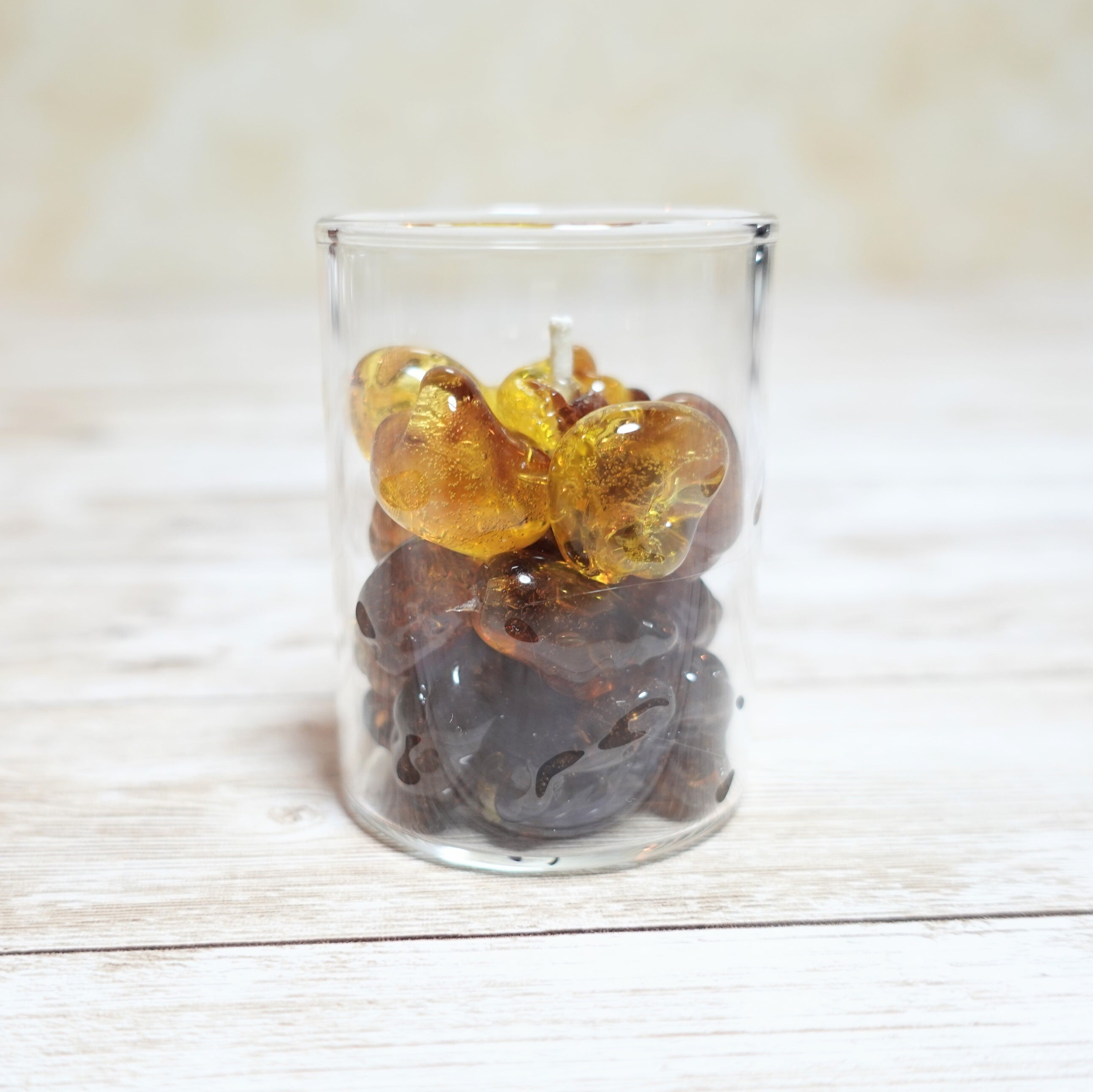 本物の琥珀の精油を閉じ込めたアロマキャンドルです。スモーキーで甘く温かみのあるウッディな香りをお楽しみいただけます。